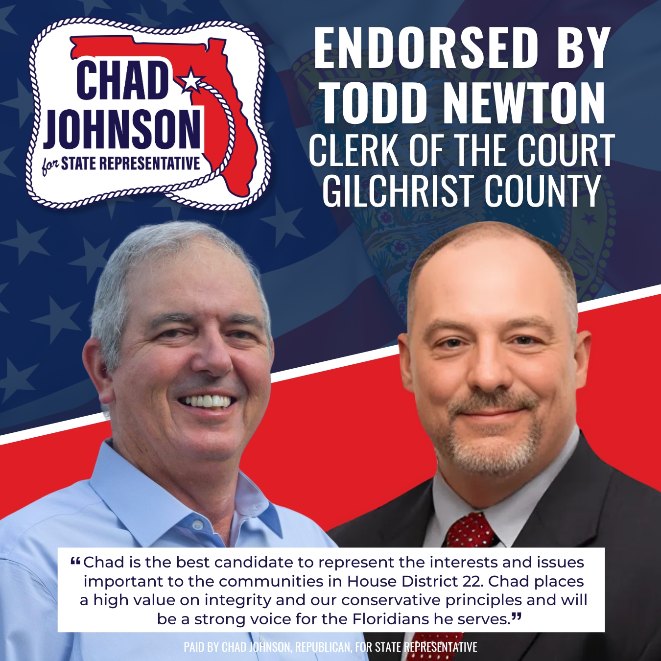 Chad Johnson will support our law enforcement, military and veterans. Those who serve and protect should be appreciated and respected.